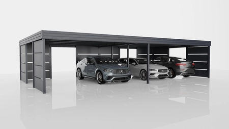 Der Reihen-Carport mit acht Modularwänden ist eine vielseitige Lösung mit modernem Design. Die leichten Paneele passen sich harmonisch an verschiedene Gebäudetypen an und schaffen ein stimmiges, funktionales Gesamtbild. Ideal für Neubauprojekte und Gemeinschaftsbereiche, in denen sowohl Optik als auch langlebige Stabilität gefragt sind.