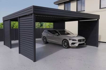 - Carport aus feuerverzinktem und pulverbeschichtetem Stahl – bietet zwei Stellplätze und schützt Fahrzeuge vor Witterungseinflüssen. Pflegeleicht, langlebig und mit einem modernen, ansprechenden Design. Resistent gegen die Auswirkungen der Zeit.