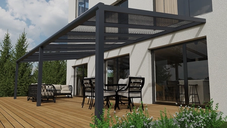 Ergänzen Sie Ihren Außenbereich mit einer einzigartigen Terrassenüberdachung aus hochwertigem Aluminium. Mit einer großen Auswahl an Stilen, Farben und Dachformen ist es einfach, eine Terrasse zu schaffen, die perfekt zur Architektur Ihres Hauses und zum Charakter Ihres Gartens passt. Entscheiden Sie sich für Eleganz, Langlebigkeit und Komfort - ein Baldachin, der nicht nur schützt, sondern auch erfreut. Ihre Traumterrasse wartet darauf, realisiert zu werden!